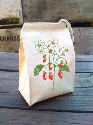 There's no waste here. This Lunch bag is made from recycled cotton fibers (scraps are collected and woven into new canvas material)... A basic canvas lunch sack that's reusable and machine washable.