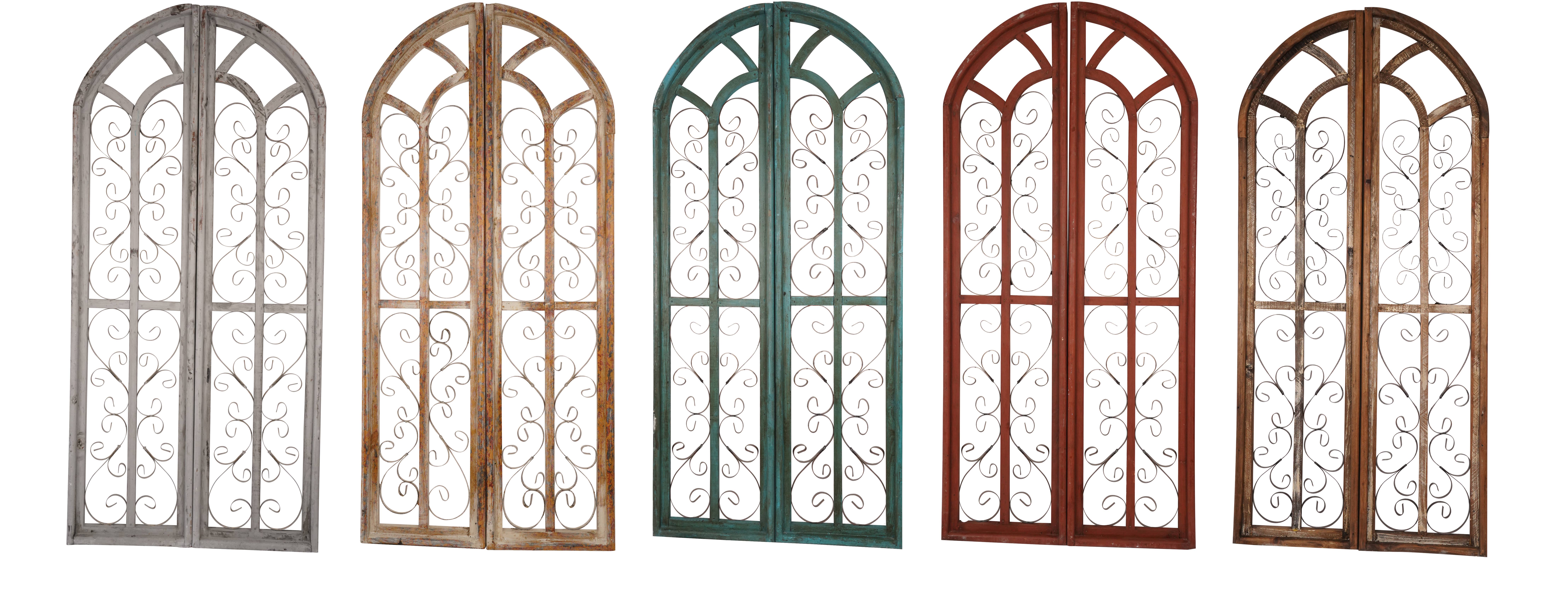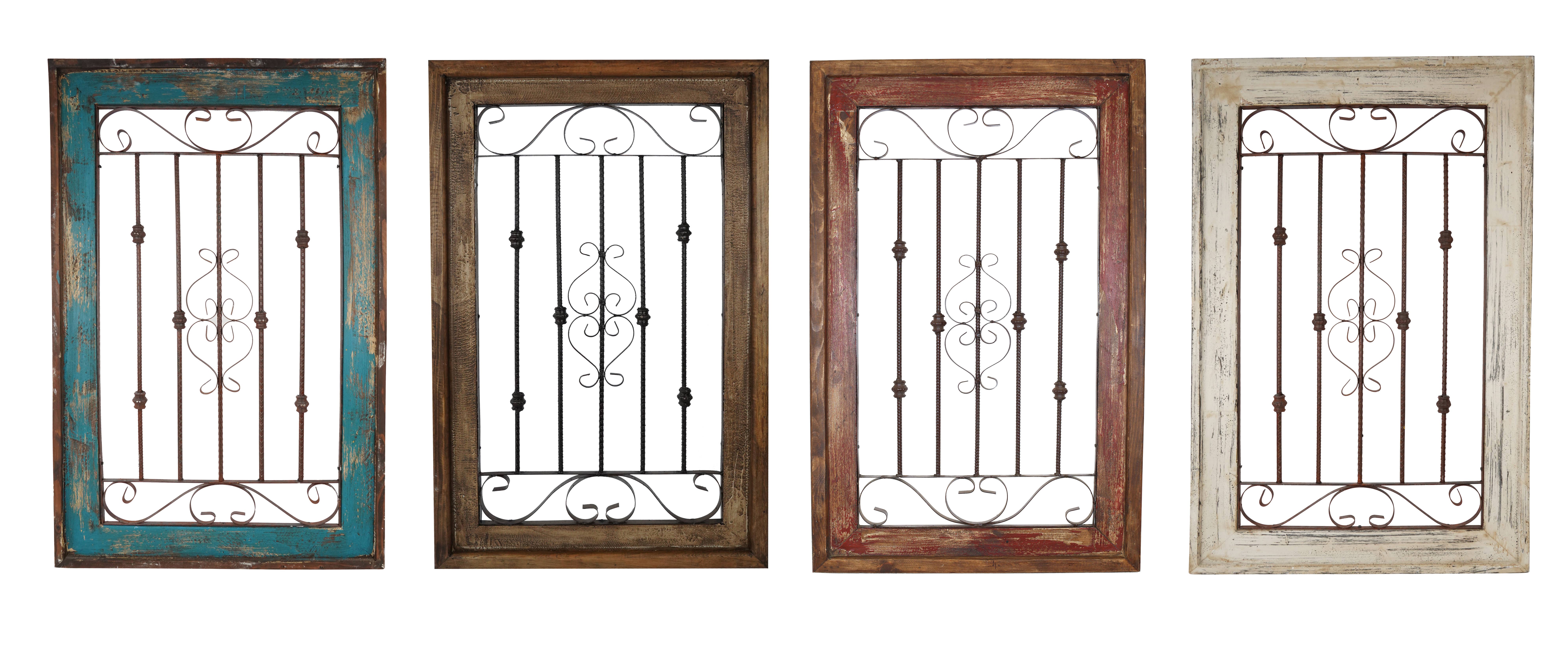 Intricate details and handmade workmanship is apparent in our beautiful Hacienda Architectural Window. We have this window in Turquoise, Red, Gray, Antiqued White and Vintage White. If you wish to put them outside, a very thick coat of sealer will keep them intact. Remember that these are all handmade and will be one of a kind. The photo is a representation of what you will get, but very, very similar. They are handmade out of wood and iron and painted in different layers. This window measures about 36x36 inches. This is a decorative window only and does not have glass, purely as decorative.