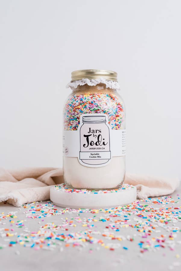 All the baking ingredients to make Dairy Free/Vegan Oatmeal Chocolate Cookies. Simply pour the mason jar mix into a bowl and add vegan egg**, slightly melted vegan butter**, and vanilla. Combine and bake at 350 degrees for 8-12 minutes. **For tips on how to make your cookies vegan or dairy free, visit: https://jarsbyjodi.ca/pages/tips-ingredients. Contains: flour, baking soda, baking powder, salt, golden yellow sugar, oats, white sugar, and dairy free/vegan semi-sweet chocolate chips. *Processed in the same facility as common allergens: wheat/gluten, peanuts, tree nuts, milk, soy and eggs. Cross contamination may occur. Jars by Jodi creates mason jar cookie and dessert mixes - perfect for party favours, presents, client gifting, or an easy way to make treats at home. Yield per mix: 12-15 cookies (mini size) 24-30 cookies (regular size)