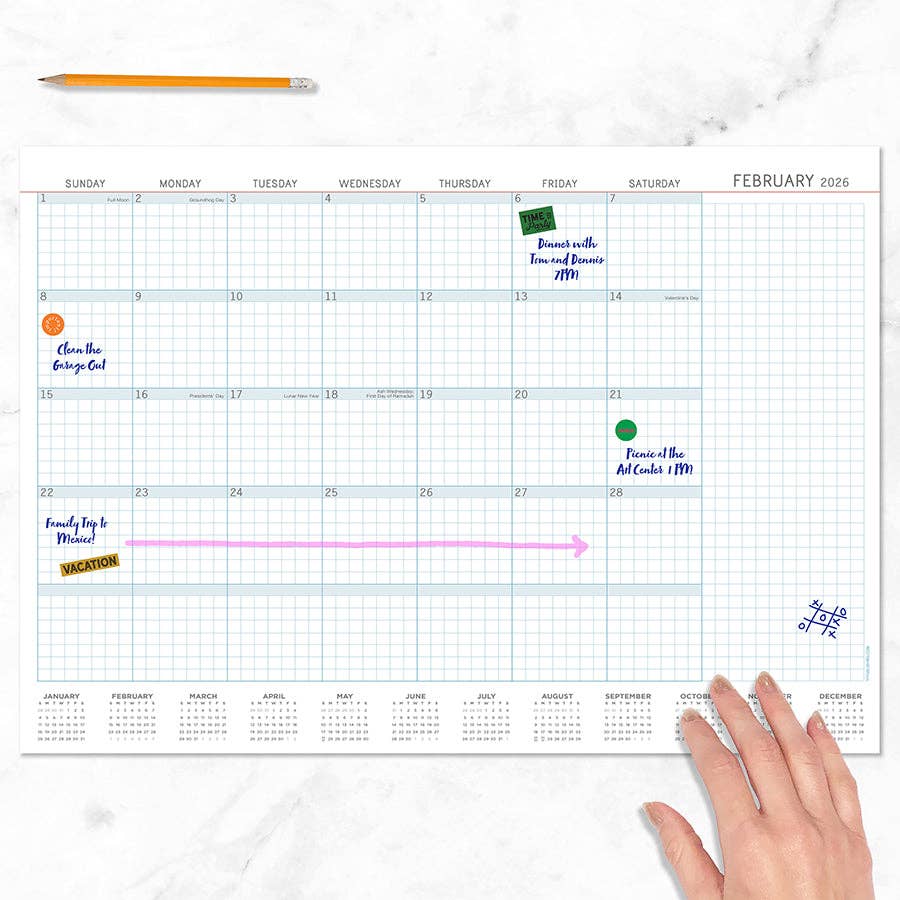 This beautiful 12-month calendar features classic artwork with a fun, modern twist, specially designed for each month of the year. Printed on high-quality thick cardstock, it offers a premium look and feel while adding personality and charm to desks, shelves, and workspaces. Sized to fit perfectly in a small easel, frame, or stand, this calendar comes gift-ready—making it an easy and eye-catching option for customers shopping for unique stationery and desk décor. DETAILS - 12 individual calendar pages, one for each month - Printed on high-quality thick cardstock - Size: 5 x 7 inches - Packaged in a clear bag and tied with a navy and white striped ribbon - Ready for gift giving - Stand not included Perfect for year-round organization, desk décor, and thoughtful gifting with a playful twist!
