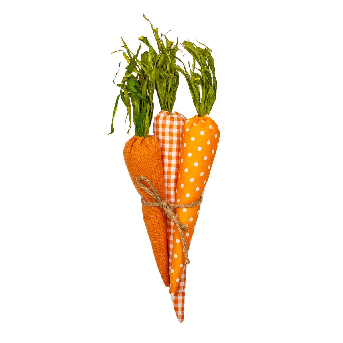 Tan check carrot, min. 6. Measurements: 2" w x 10" t tan check fabric carrot.