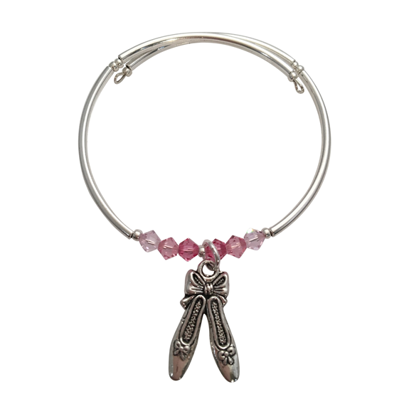 Dance/Ballet Themed Bracelet with Interchangeable Snap Base. Bracelets feature the dance charm, dancing girl charm, ballet/dance slipper, red charm and snap base. Customize this bangle with any of the interchangeable snaps in our shop. These pieces make great gifts!