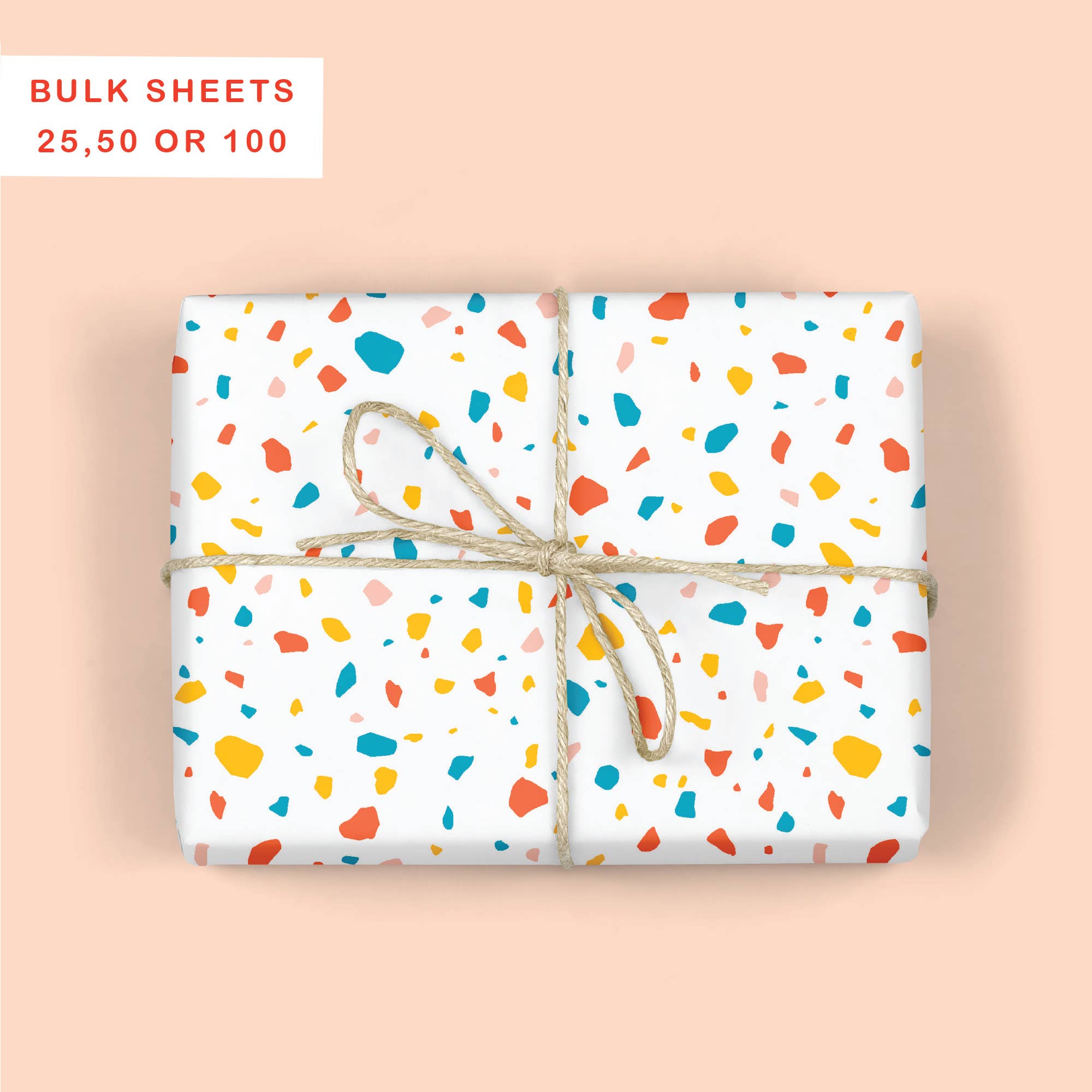 This modern Black and White TERRAZZO wrapping paper can be used all year round and pairs perfectly with our Black & White Holiday collection. Keep it simple with a string or wrap with a colorful ribbon for fun celebrations! Printed in rich color on thick luxurious paper which makes it easy to wrap a box with perfect folds. The paper cuts clean and does not rip while wrapping. - 1 Roll of 3 sheets - Each sheet measures 20" x 29" - Printed on 70# matte paper - Designed and printed in the USA - Packaged in a clear plastic sleeve THIS LISTING IS FOR A WRAPPING PAPER ROLL. A ROLL IS 3 FLAT SHEETS ROLLED IN A PLASTIC SLEEVE FOR EASY MERCHANDISING . PLS SEE OUR OTHER LISTING IF YOU PREFER FLAT SHEETS FOR YOUR STORE.