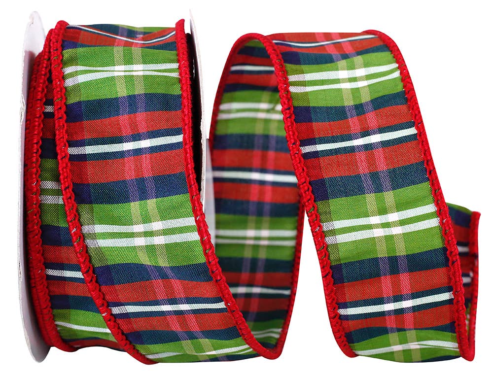 Ribbon , Multi, 1-1/2 Inch, 10 Yards, Fiber Content: 100% POLYESTER - Another modern but traditional holiday plaid, this kelly green, red, white and black combination is a beautiful ribbon & is perfect for Holiday projects, wreaths & more! The wired edge will help create bows that hold their shape.