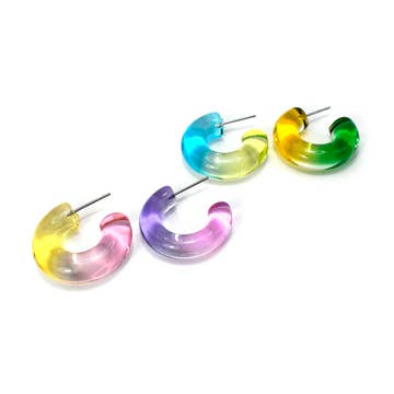 Our best-selling earring found her mini. Layers of orchid pink sequins are hand-folded and stacked for ultimate shine. Gold-plated hoops measure 1 1/2” long. Second photo shows original size earring Sparkle and Shine Earring compared to the mini. Each pair comes packaged in our signature hoop earring canister.