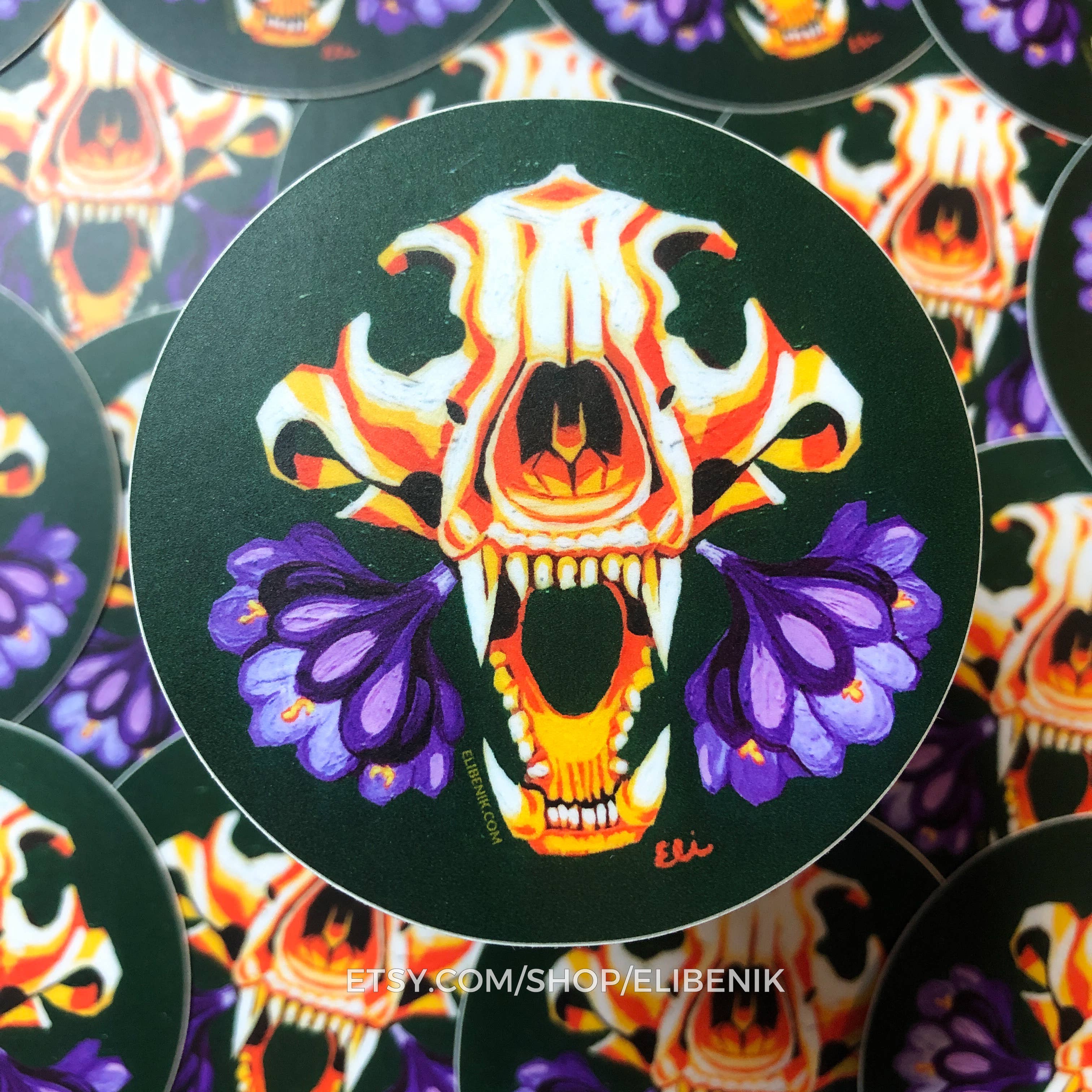 'Snake Skull' vinyl sticker by Turtle's Soup. 🐢 Most stickers are approximately 3 inches by 3 inches. 🐢 Our Turtley Awesome vinyl stickers are made from the highest quality ingredients on the market! Printed on thick, ultra durable vinyl, these stickers are made to last. They're UV-coated making them waterproof, weatherproof, and dishwasher safe! 🐢 Save the planet, pass on packaging. All of our stickers are packed loose, meaning no plastic, no paper, just product! Should you require packaging, we can offer it upon request with an added environmental surcharge. 🐢 We offer retail displays in a variety of sizes. Ask about our 12 or 24 pocket countertop displays. Have a slat wall? We also offer a 30 pocket wall unit. 🐢 We always include hand picked samples to fit your boutique with every order. Interested in trying out a specific SKU in your shop? Let us know and we'd be happy to include some freebies. 🐢 Copyright © 2020 Turtle's Soup. All Rights Reserved.