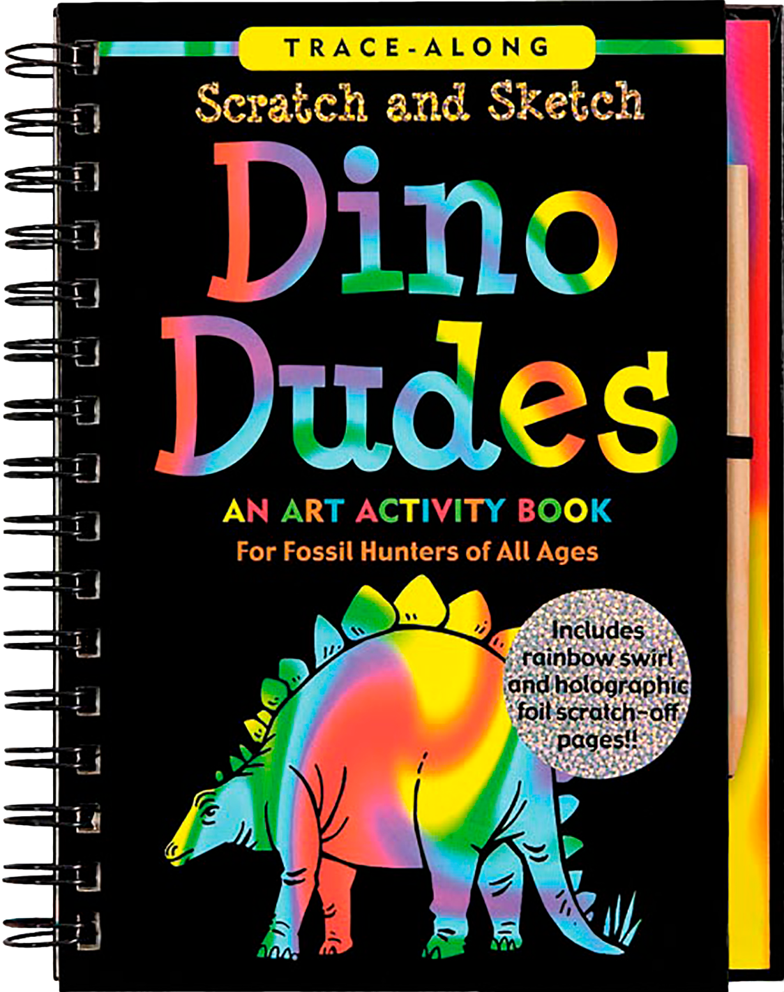Calling all dinosaur fans! This art activity book is for you! Scratch and Sketch your way through prehistoric times and create fierce designs that glitter with color! Each detailed two-page spread features a highly detailed dinosaur scene. The left-hand page features fun and informative dino facts. The right-hand black-coated page is for scratching with the special fine stylus included. Enjoy seeing glittery foil emerge in your artwork like magic! Activity book contains 20 black-coated gold, silver, or multicolor glitter pages; 20 fun dinosaur fact pages; 20 extra pages for sketching and doodling; and comes shrink-wrapped with the wooden stylus for drawing. Ages 8 and up. Sturdy wire-o hardcover binding. Art activity book measures 6-3/8'' wide x 8-1/2'' high. 64 pages.