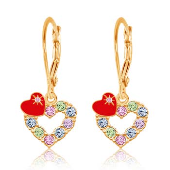 A favorite among girls who want to feel a little grown up, these leverback dangle earrings are both comfortable and secure—perfect for everyday wear or special occasions. The Crystal Butterfly style includes a delicate butterfly with light-catching crystals. Sweet, stylish, and sparkly, these fashionable leverback earrings are designed with kids in mind and add just the right amount of shine. Why Girls Love These Earrings: • No more lost earrings – the leverback hinge provides a strong, secure closure • Comfortable to wear – rounded design is gentle on small ears • Easy to put on and take off – perfect for girls gaining independence Materials: • Zinc, Enamel, Crystal • Hypoallergenic & Non-toxic • Nickel, Lead, and Cadmium Free Not intended for children under the age of 5.