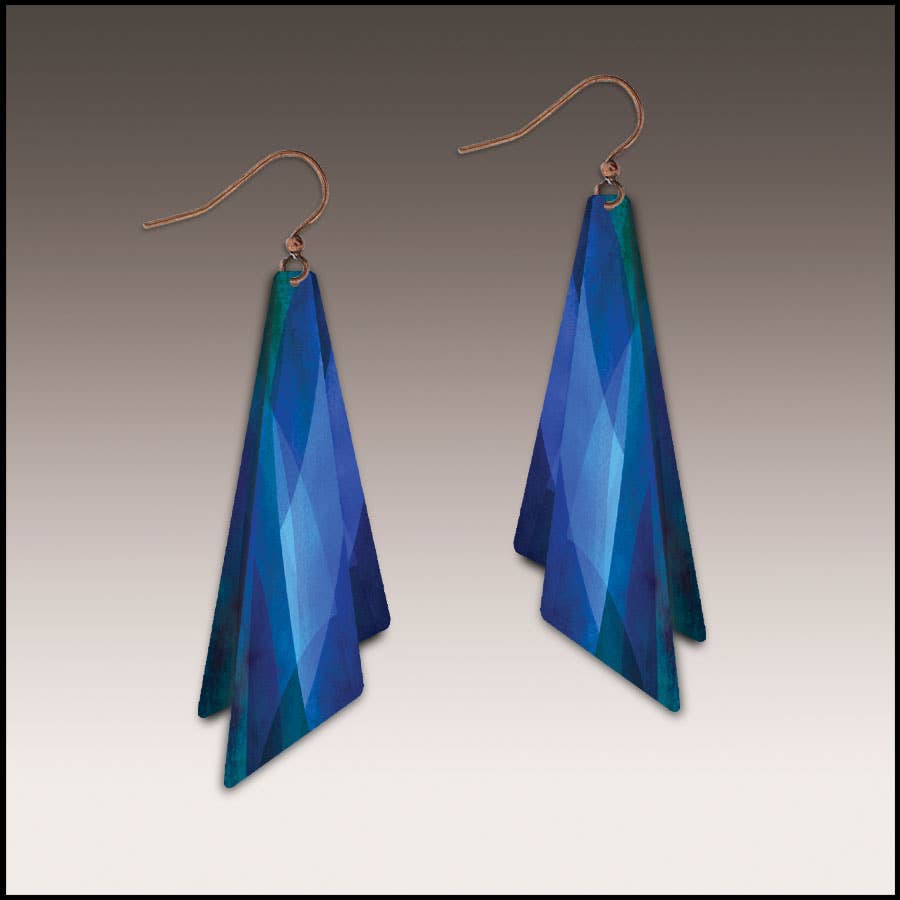 A short version of the Cascading Leaves earrings, perfect for those who like a splash of color but prefer a less dramatic look. Aluminum with surgical steel. Earrings measure 1.5" without the earwire and 2.25" including earwire. SKY OMBRE: silver, turquoise, blue Aluminum components on stainless steel earwire Handmade in California by Rebeca Mojica.