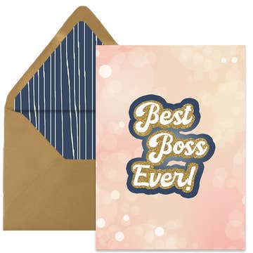 Celebrate your amazing boss with our Best Boss Greeting Card, complete with a "world's best boss" trophy. Perfect for Boss's Day and guaranteed to make them smile (and maybe tear up a little). Show your boss some love with this card (they deserve it!). • Blank inside. • Premium 100% recycled paper. • 4.25"x 5.5" fold-over card (Size A2). • Paired with a coordinating FSC certified envelope. • Packaged in a protective cellophane sleeve. • Professionally printed in the United States. • Made in the USA.