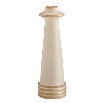Handmade Iron Candlestick (Sold Individually) A unique, handmade iron candlestick that balances primitive character with contemporary elegance. Each piece is individually crafted, making no two exactly alike. The base is made of sand-cast iron, providing weight and stability, while the candle cup is hand-forged iron with an antique finish. Subtle brass rings add warmth and contrast, highlighting the sculptural silhouette. Designed to stand beautifully on its own, this candlestick becomes especially striking when displayed in groupings of three, creating rhythm and visual depth. ⸻ Details • Sold individually • Materials: • Sand-cast iron base • Hand-forged iron cup (antique finish) • Brass & white accent rings • Style: Contemporary • Media: Metal (Iron / Wrought Iron) ⸻ Dimensions • Base diameter: 2” • Height: 12.5” ⸻ Candle Information • Includes one beeswax candle • 1/2” x 6” (standard version) Extra beeswax candles available: • $1.40 each (1/2” x 6”) • Available individually or by the box ⸻ Alternate Size Option • Available with a 7/8” candle cup • Price: $45.00 each • Includes one 7/8” x 6” beeswax candle • Extra 7/8” candles: $3.50 each