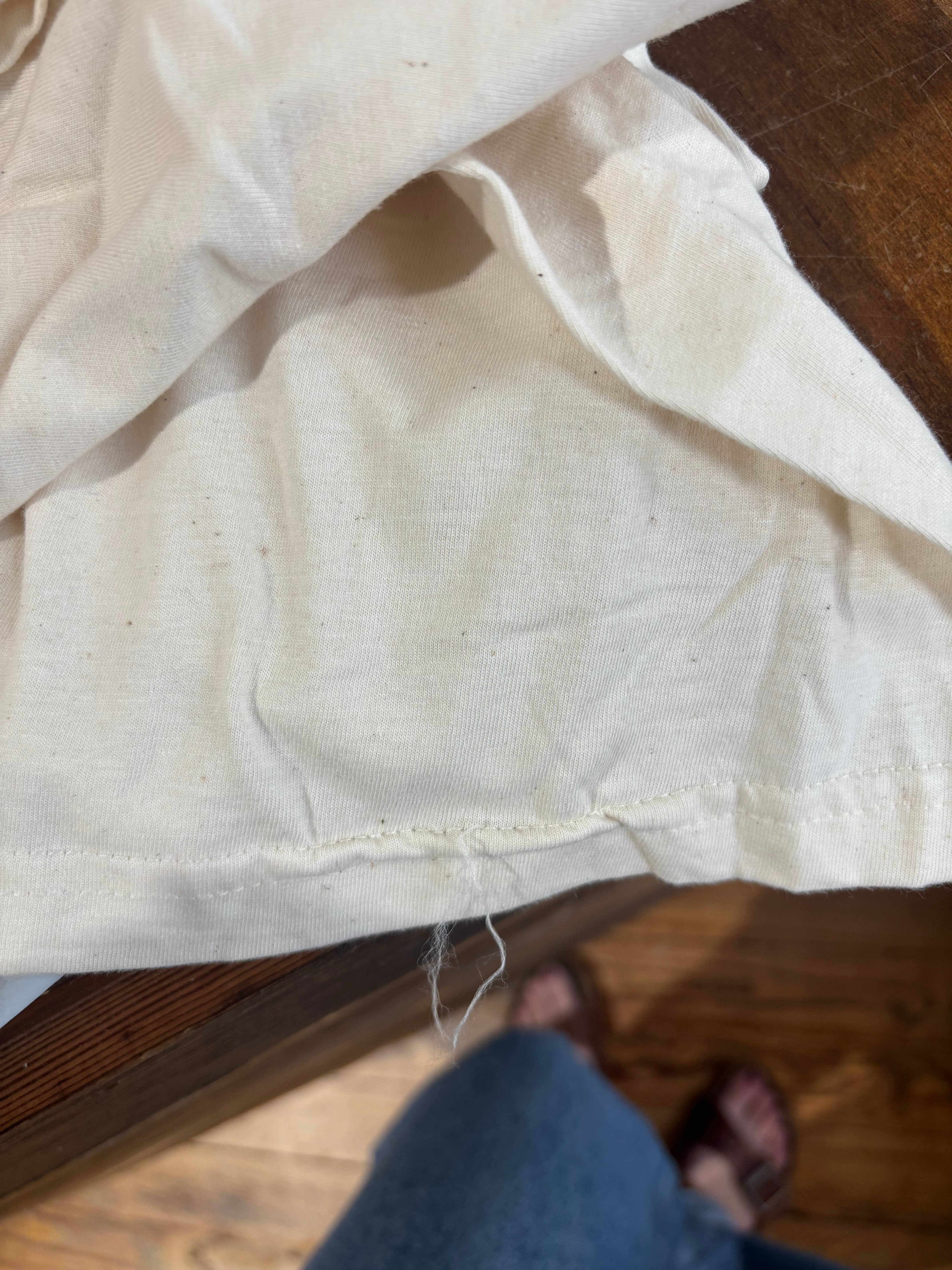 Shirts are absolutely different than the photos - while the design is the same the pictured tee looks as if it is a heavier weight material with an oversized fit - they are Bella canvas tees that are thin and not oversized even in the slightest. We kept the tees instead of returning as we would have to eat shipping cost.