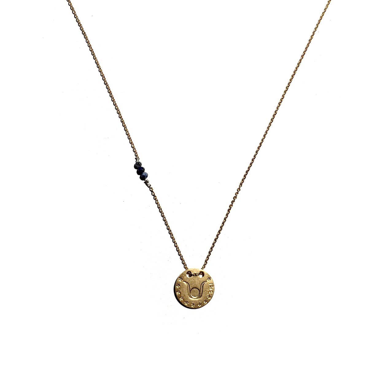 Aphrodite, Goddess of Love and Beauty. Pink thread necklace, with brass medal and silver or gold plating. Adjustable. Can be mounted in another color.