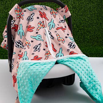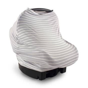 Made from the softest 100% Jersey Knit Polyester, our carseat covers are hand sewn in the US with breathable stretchy fabric—Compact when folded, taking up little storage space in your diaper bag or purse 1/2" Hemmed edges 360-degree coverage Multi-Functional product- nursing cover, car seat cover, shopping cart cover and infinity scarf Care Instructions: Can be machine-washed warm, tumble dry low, with no bleach additives.