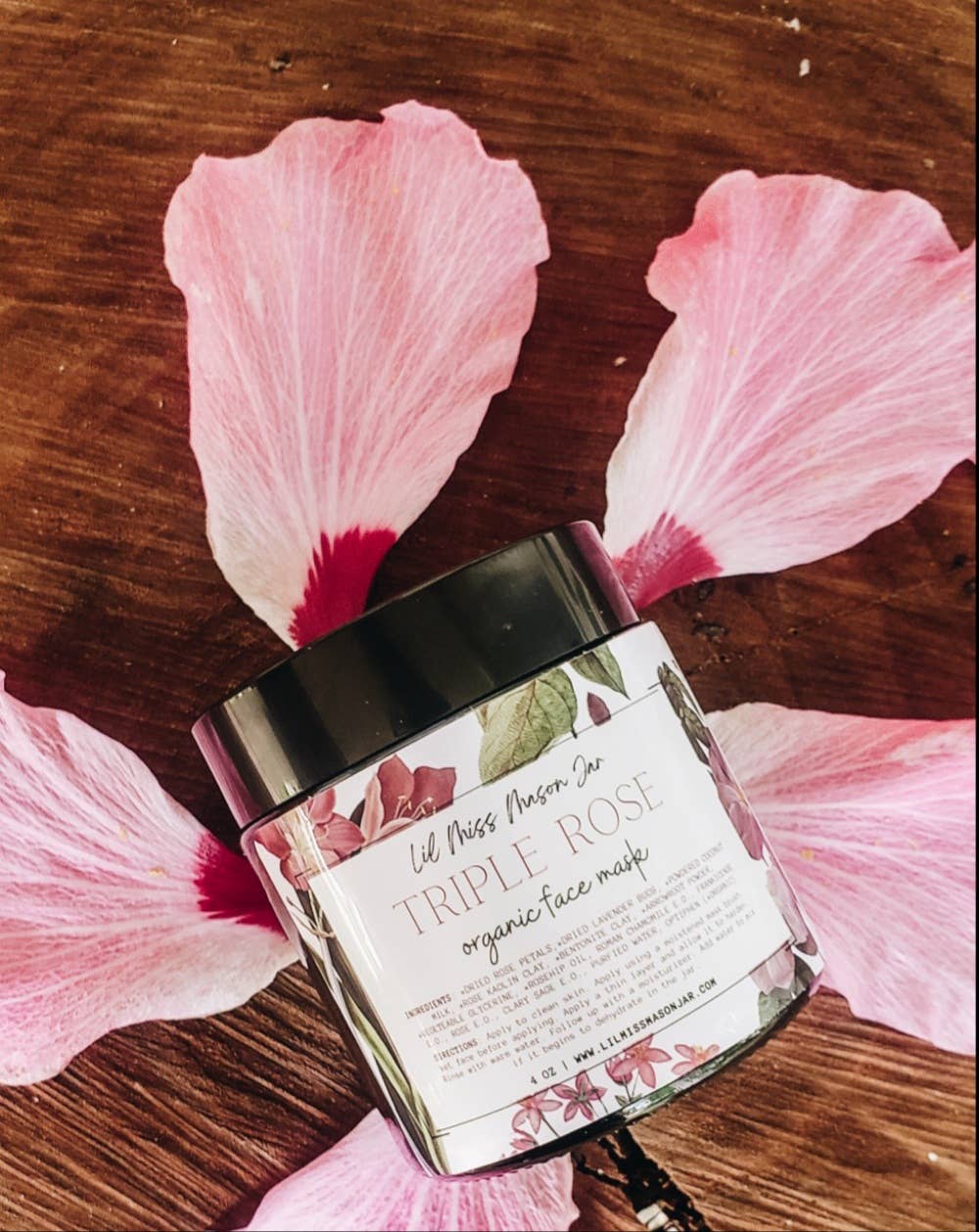 *If you need a custom-designed label with your logo and info please message me about pricing. This listing is for a single (1) Triple Rose Facial Mask Handmade Ecofriendly Glass Amber Jar 4oz weight 70% organic Non-toxic, free of fragrance Adds moisture, glow, and overall smoother, softer skin.