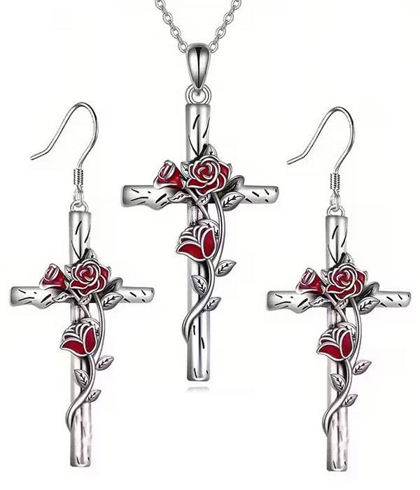 Necklace I Live On Floral Cross