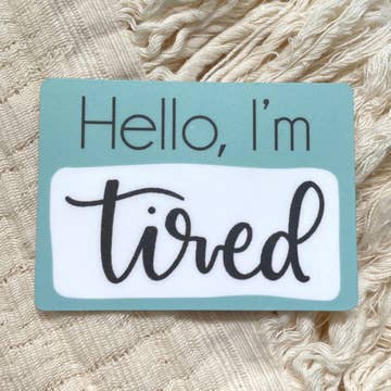 Are you tired? I'm tired. A cute topical circle waterproof vinyl sticker with featuring a sleepy crescent moon with hand lettered words "Alas, Tired Again." This one is for the pregnant ladies, the new parents, the insomniacs, and the just the plain ol' chronically tired folks. A funny, relatable conversational piece to stick on your laptop, coffee tumbler, or just straight onto your forehead if you really need to get the message across. - 3x3" Diecut Circle - Waterproof Vinyl Sticker