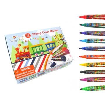 ASSORTMENT PACK Includes: 12 pieces with FREE Display *Designs subject to availability. On-the-Go Color Pop Markers include 10 colorful, scented, double-sided markers in an adorable themed suitcase! • 10 double sided markers- stamp marker on one side, broad line marker on the other • Bright, vivid colors • Stamps include heart, star, umbrella, music notes, question mark and more • Scented • Washable, non-toxic • Comes in adorable “suitcase” to take on-the-go Each marker has an individual stamp on one side and a broad line marker on the other! Markers are washable and are housed in a mini suitcase that even doubles as a fun toy with extendable handle and wheels that swivel a full 360 degrees. Color Pop markers make excellent Stocking Stuffers, Back to School Surprises and Birthday gifts.