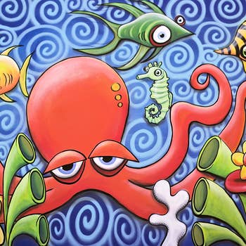 Come, let us join the ocean life down amidst the colorful coral reefs as they enjoy some leisure time with one another. The young fish scouts have set up camp and have begun the marshmallow roasting, so do not be shy. The mermaids have been called to camp for campfire songs and octopus is pouring some hot tea. The sharks have mixed up some refreshing tropical drinks for everyone. You may notice some golf happening in the area and even some water polo and storytime for the baby urchins. The divers have been allowed to join everyone because they have brought some music for the axolotls to dance to. There is something for everyone down here in the coral recreational area, so please make yourself at home and bring your bubbles! - Signed and numbered limited edition print run of 250. - 13"x19"