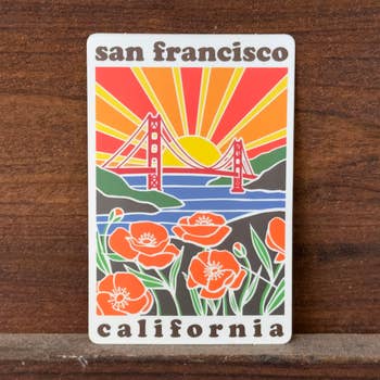 Like all of our stickers, these are made of the highest quality thick, glossy, waterproof vinyl. They will last for years on a water bottle or a car. We work with a small professional sticker manufacturer based in Portland Oregon (who also happen to be awesome people!) to ensure that we have the best stickers on the market. California Souvenir Retro Fairy Beach Colorful Bright Local Sticker State Sticker