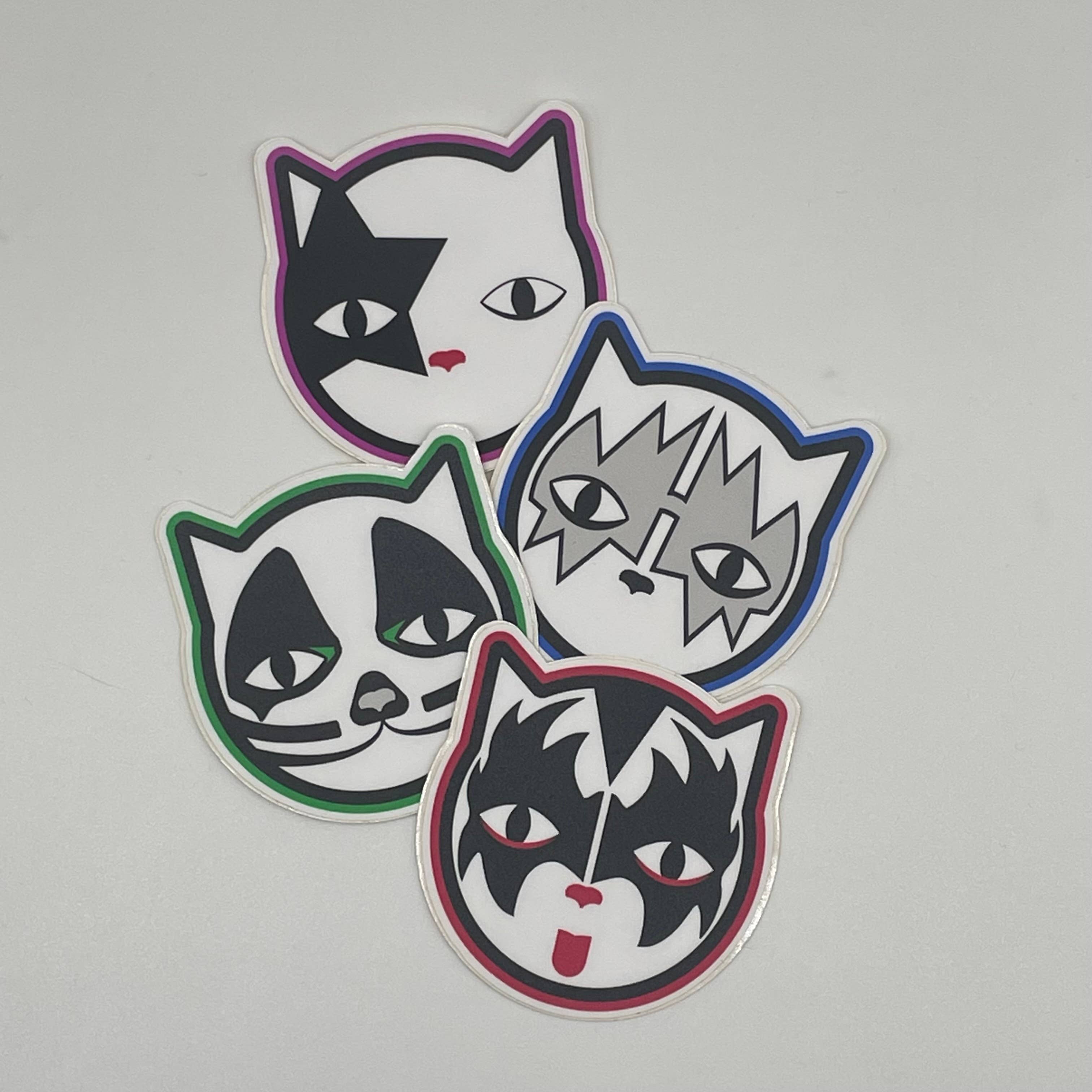 This is an original vintage vinyl sticker from the 1990s, combining the classic charm of Felix the Cat with the face-painted flair of KISS. Measuring 4.25" tall by 4.5" wide, this sticker is made for outdoor use and built to last. With bold colors and thick outlines, each Felix face takes on a different rock persona - from the Demon to the Starchild - making it a perfect mashup of cartoon nostalgia and glam rock attitude. Ideal for fans of vintage pop culture, KISS collectors, or anyone who wants to stick a little weird on their ride, locker, or amp case.