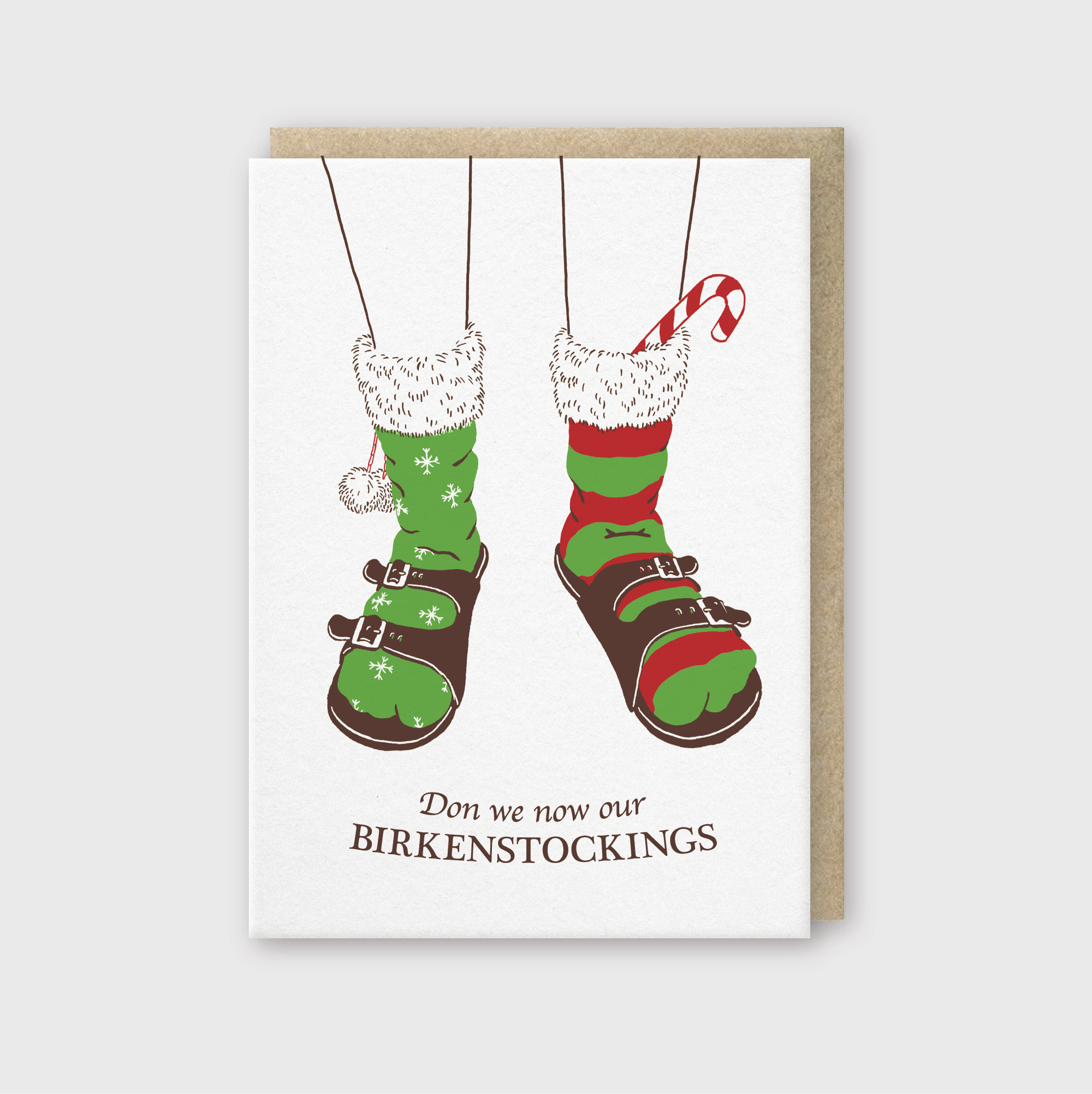 SKU: HOL046-SC Made in United States Color: Beige and Green Finish: Letterpress Is Set: Individual Occasion Theme: Christmas Recipient: Everyone Season: Holiday Season Special Feature: Textured Theme: Holiday Season Tone: Funny Product Language: English Weight: 18.14 g (0.64 oz) Product Materials: Recycled Packaging: Recyclable and Recycled Production: Ethically sourced