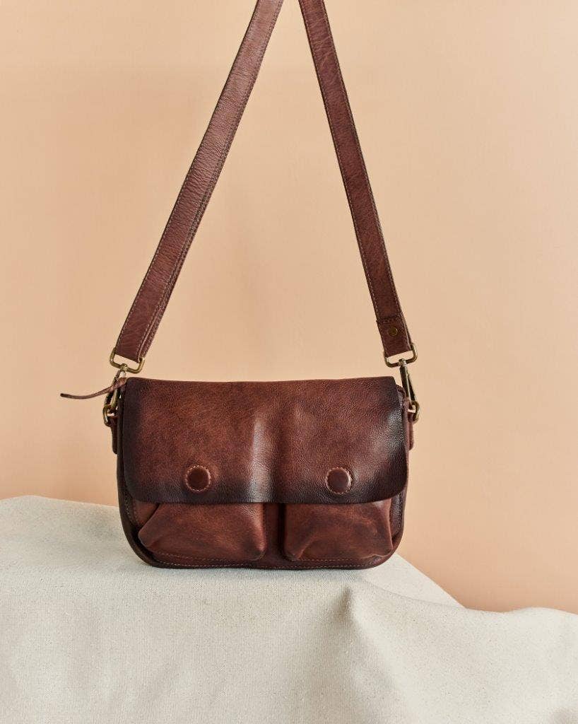 Genuine Leather Unisex Crossbody - Rustic Tan