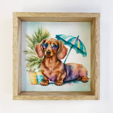 Dauchund Dog Summer Dog Small Canvas Sign- Beach Dog