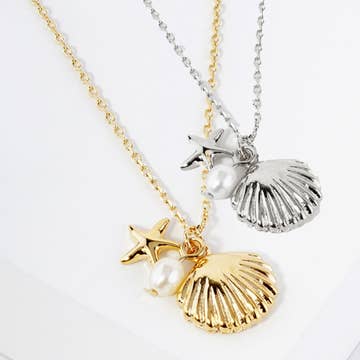 Wholesale Dainty Seashell Pearl Pendant Necklace in Stainless Steel