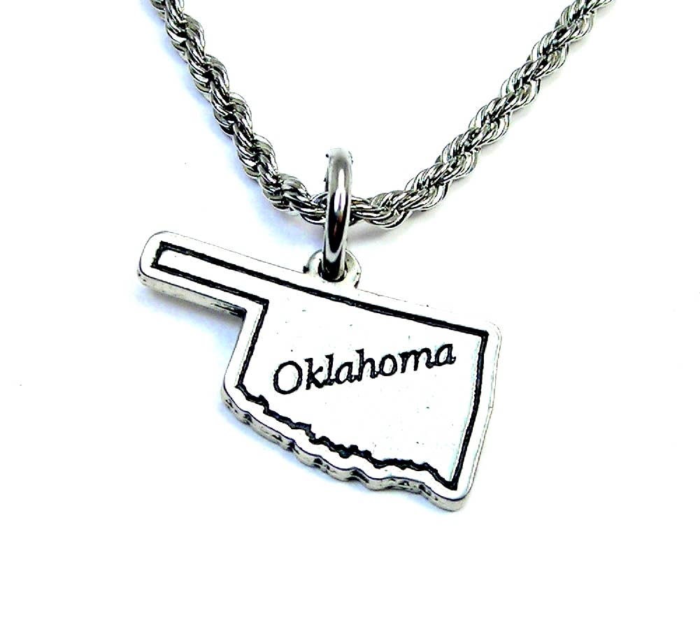 Home state pewter necklace on chain - Oklahoma with bison cutout. 18" long with 2" extender.
