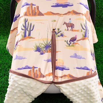 Soft and breathable infant car seat cover that can also be used as a cover for nursing, shopping carts, high chairs and infant seats. Machine wash on cold-delicate cycle. Hang to dry. Material: 90% cotton 10% spandex.
