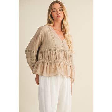 31767T - Lace Chiffon Contrast Accordion Pleated Blouse