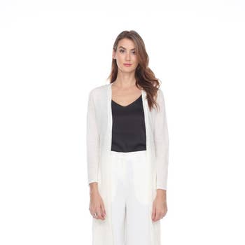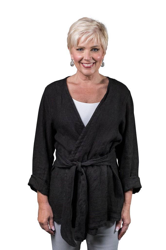 The Multi-Way Jacket - Draped long sleeved jacket with side pockets, perfect for a third layer or as a transition piece between seasons. Wear it with the Ja belt draped, or pinned for a new silhouette. Pin included. Available in Black, Navy, and Charcoal. This jacket is especially great for traveling. It folds up small to fit in any suitcase, the fabric doesn’t hold onto wrinkles, and it washes like a dream. You can style it as its own look, or wear it as a layer, there’s so many ways to wear it! * 60% Rayon 33% Nylon 7% Lycra * Made in the USA * Machine or hand wash cold Don’t see your size? Contact Us for a custom size.