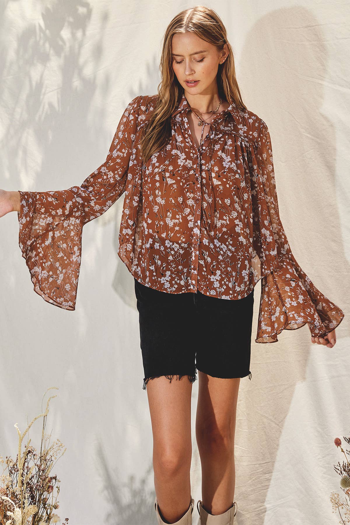 Floral Sleeve Button Down Top (1)