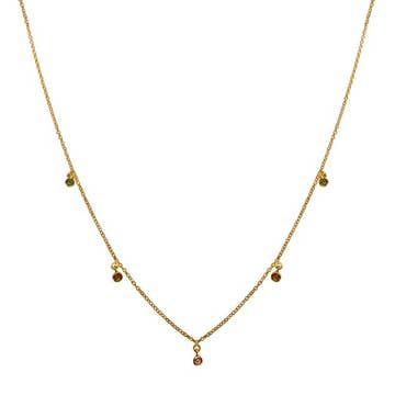 5 tiny greyish/green labradorite stones on a thin chain. - Length: 17" - 14k Gold Filled - Semi-Precious Stone:Â Labradorite