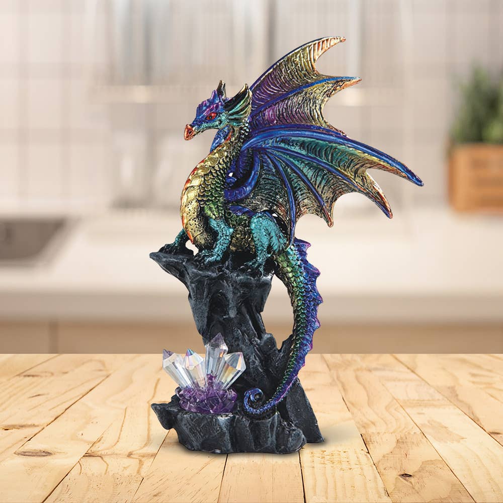 Look at this gorgeous Dragon Figurine. This piece will make an eye-catching addition for your display shelves, desktops, or office decor. And it is a perfect gift for dragon lovers. Features: Product Dimensions: 4"W X 3.5"D X 6"H Great design and craftsmanship Unique accent piece for your living room or bedroom decorations Perfect gift choice for your loved ones Clean with damp cloth