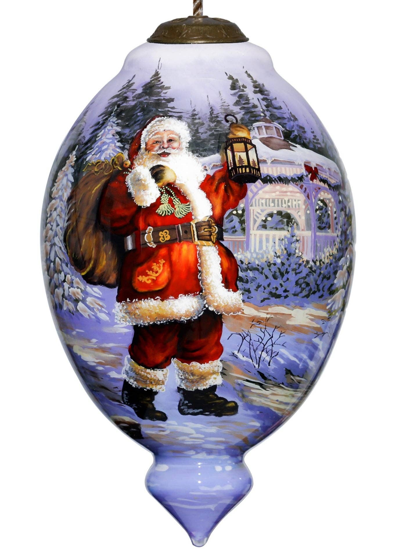 * This Inner Beauty ornament is intricately hand-painted on the inside of mouth-blown glass using the ancient Chinese technique of reverse hand-painting. * Each image is created using thousands of delicate paint strokes applied to the inside surface of the glass resulting in a truly unique work of art. * Each ornament is beautifully packaged in a satin-lined, brushed suede gift box which includes a full-color story card describing the technique of this ancient art form. * An adjustable antique gold-colored cord with tassel provides a beautiful and easy way to hang each ornament on a Christmas tree or a decorative ornament stand. * 3" diameter, Inner Beauty Round glass shape, ©Susan Winget