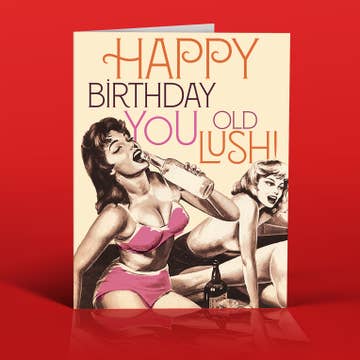 Add a little sass and crass to their birthday with this vintage retro greeting card. Featuring bold typography, sexy pinup illustration and eye-catching colors, it's a witty and bad-ass way to let them know you think another year of being fabulous is in order. Coordinating self-stick envelope liner Black Euro flap envelope** Made in the USA Wrapped in plastic sleeve for protection A2 (4.25 x 5.5 inches) Like the design? Wine Tag also available (WT-015) **NOTE: This card contains a dark black envelope. A self-stick label or paint pen is recommended for addressing.