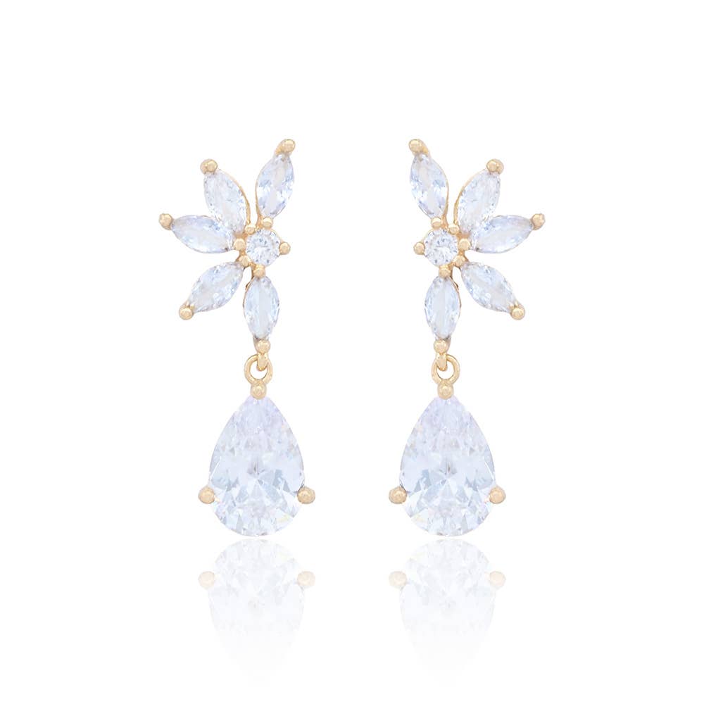 These Luisa Butterfly Dangle Earrings add a touch of whimsy to any outfit. The delicate butterfly design is intricately crafted from high-quality gold tone metal and features a beautiful blue color that effortlessly complements any skin tone. A must-have for any fashion-forward individual looking to make a statement. Product Details: * Metal: Brass * Stone Type: CZ * Size: 1.5" * Clasp: Push-Back * Water Resistant