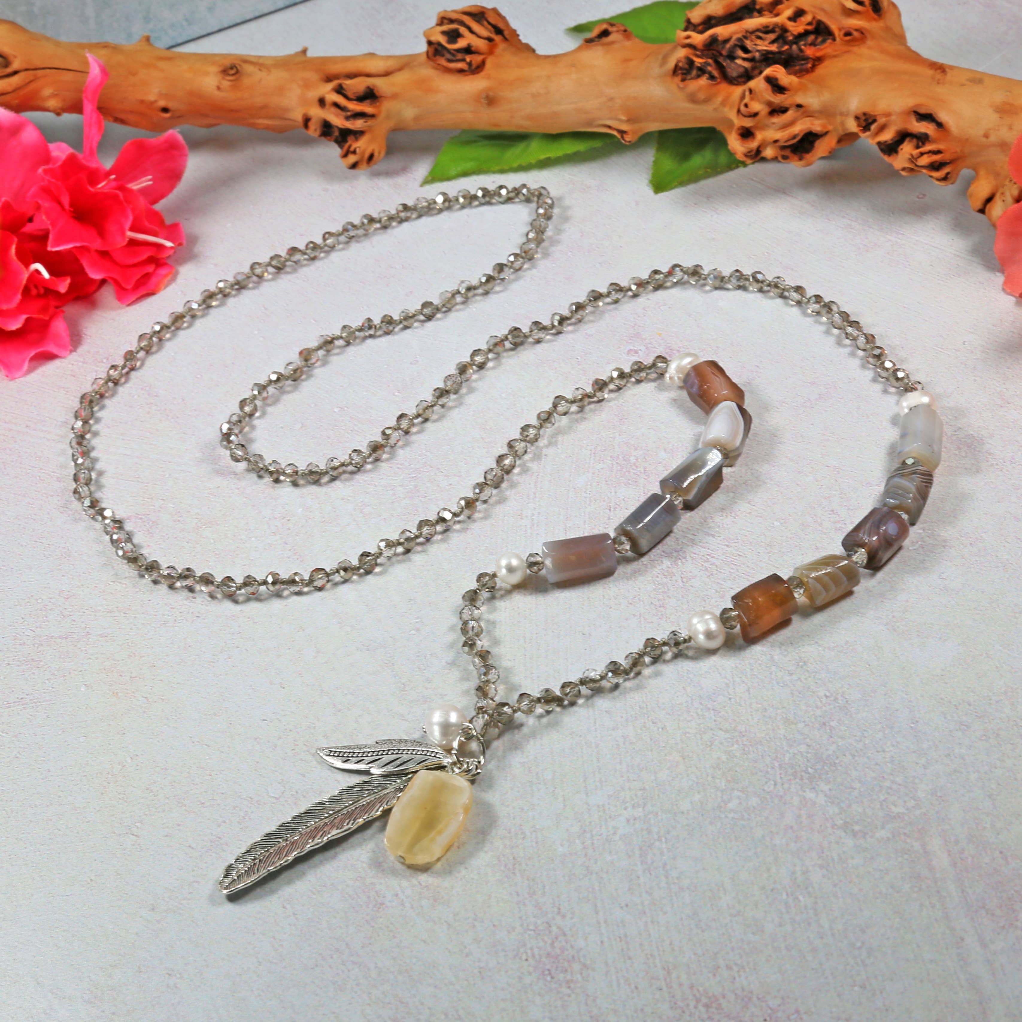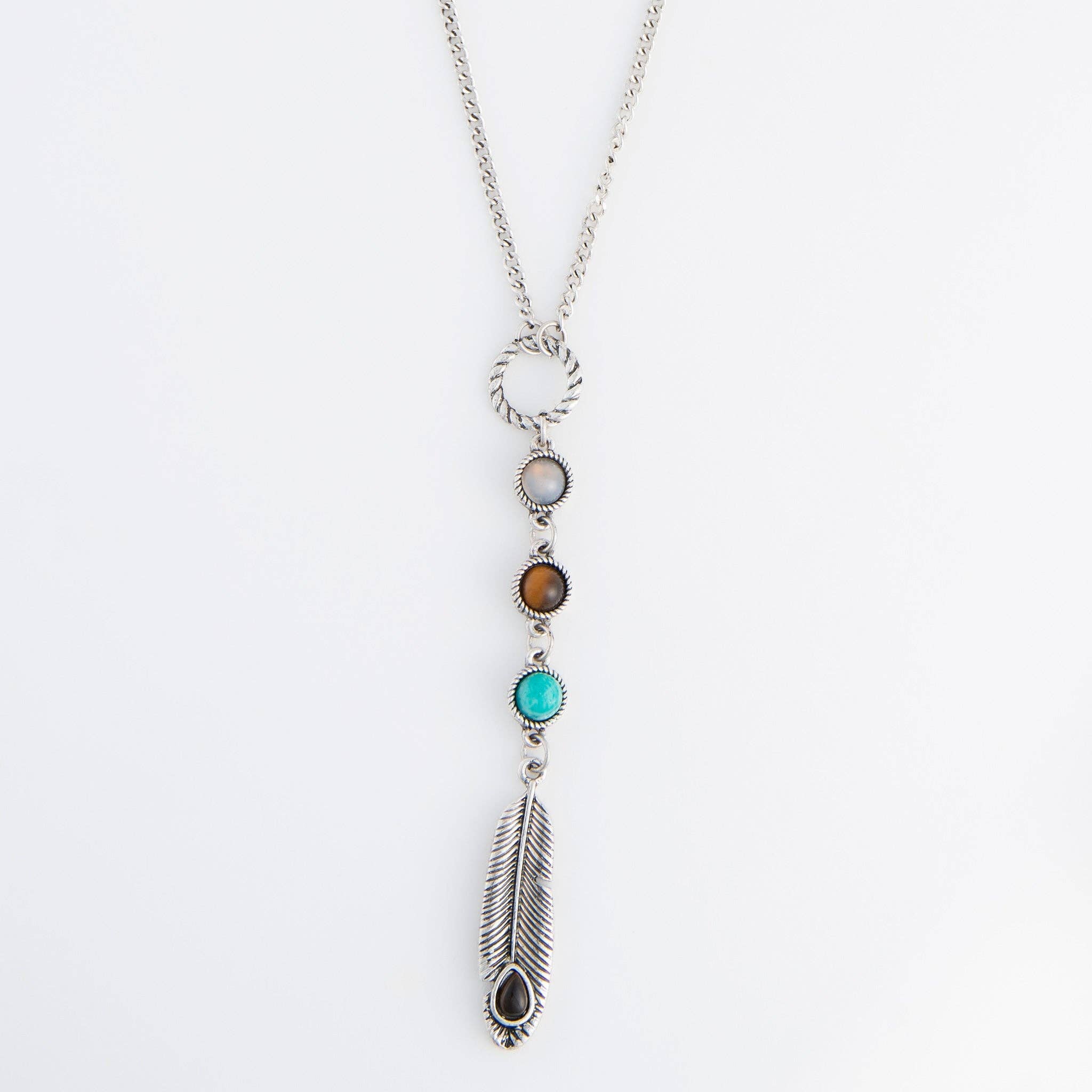 Feather Dreamcatcher Pendant Long Chain Necklace 30 inches long
