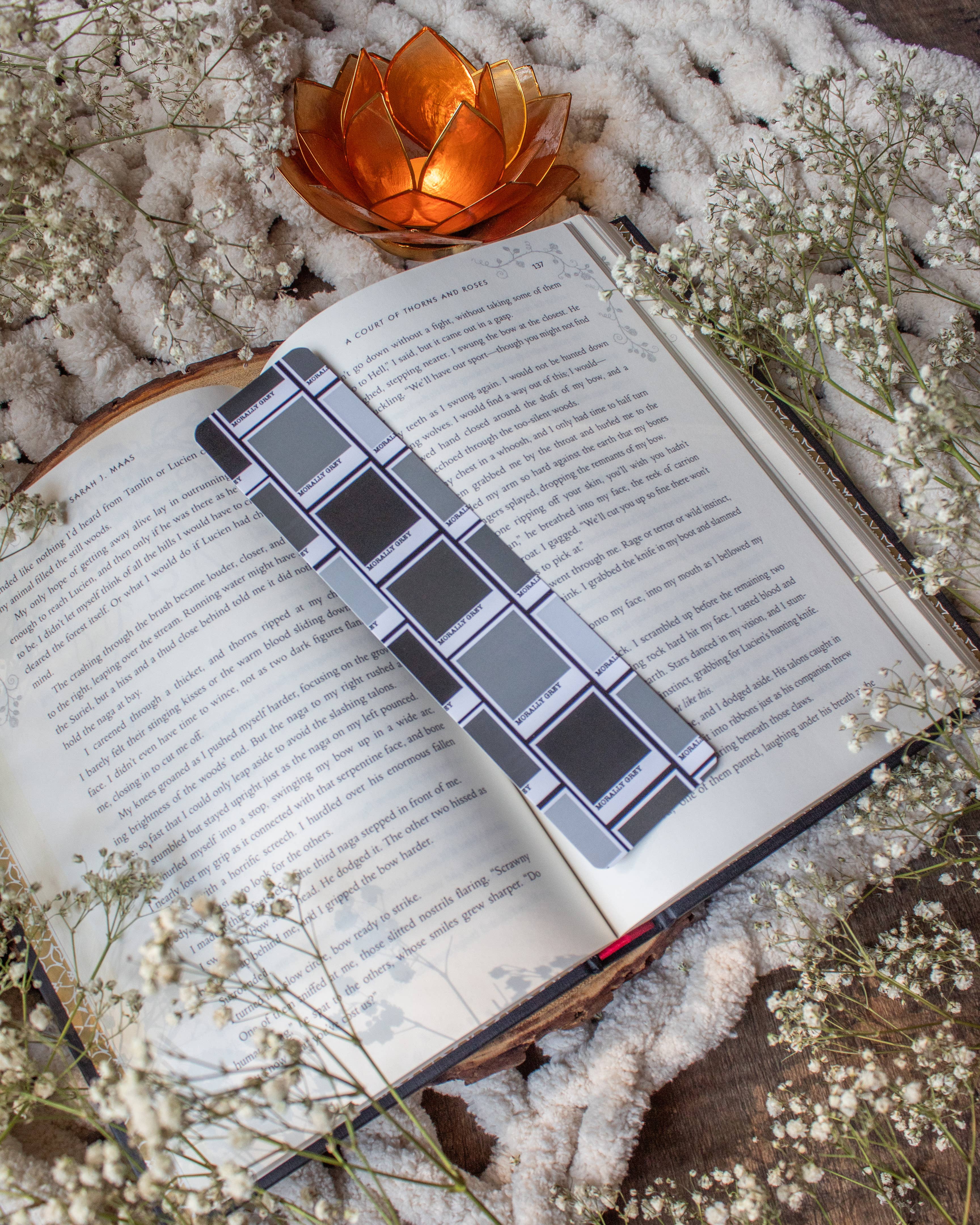 An original design, printed clear and laminated to be sturdy and durable. Please note the bookmark material is thin plastic, not resin nor acrylic. All bookmarks are individually packaged in a clear plastic sleeve with a cardstock tag on top. Additionally, all bookmarks are hand-cut and assembled by me, in my studio.