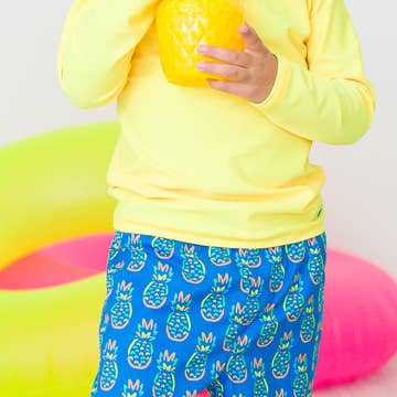 BRAND: Theo & Me SWIMSHIRT NOT INCLUDED - But can be found under Boys Rash Guard Swim Shirt SUNGLASSES - Baby Toddler Summer Sunglasses Unique, versatile, and boutique-cute — our summer swim and play shorts for infant and toddler boys are here! Say goodbye to dinos and trucks and hello to playful prints like our cool pineapple in sunglasses — designed for your little trendsetter. Made from soft, breathable fabric with a full lining, these boys’ swim shorts are perfect for land-to-water play. Available in sizes 6M to 6Y, with bold colors for swim safety and soft pastels for the neutral-loving mom. Roomy enough to layer over a swim diaper. Summer fun starts here! Details: *Available in infant 6 Month sizing to Kids Size 6 *Bright Bold Options for Swim Safety *Lined Swim Shorts *Room for disposable or reusable swim diapers *Elastic in the waist