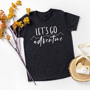 Our take a hike design on a 100% cotton rabbit skins toddler shirt.