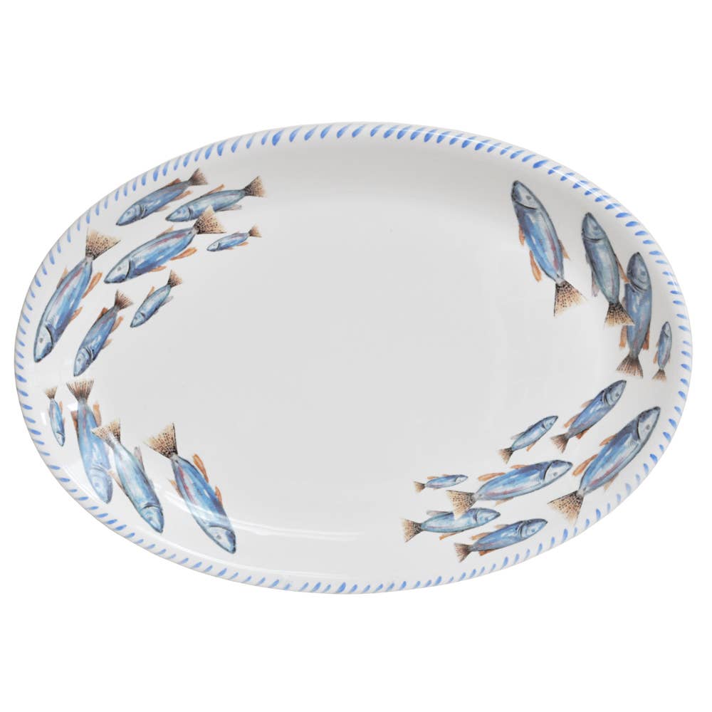 This handcrafted serving platter with lavender imprint is perfect for Holiday entertaining. This decorative serving tray will be a wonderful addition to a kitchen table centerpiece with colorful fresh fruits or a cheese platter for guests. This piece is handcrafted of a white stoneware clay, using textured slabs to create each unique form. Lavender is rolled into the wet clay for the imprint. The decorative platter is then hand painted with glazes and fired to a high temperature. This platter was hand built from stoneware clay and measures about 12" x 8" x 1 3/4" Food safe. Hand washing is always preferred for any handmade clay piece.