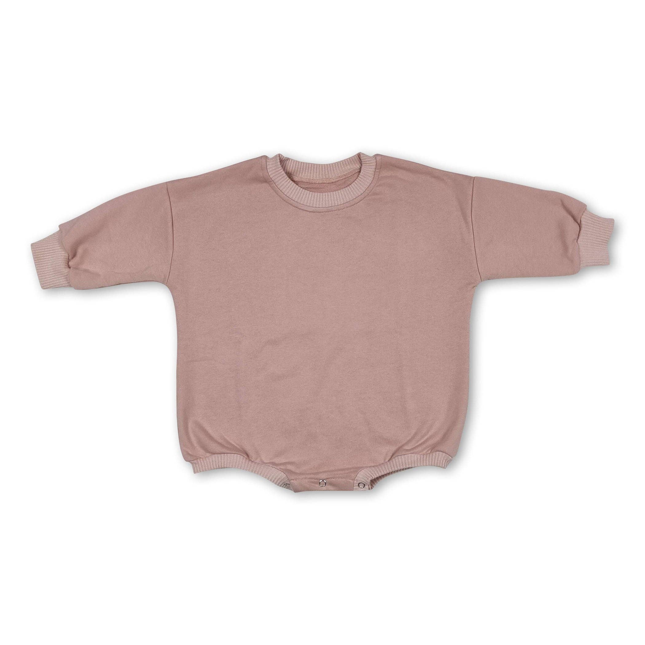 This neutral sweatshirt onesie comes in a versatile combination of beige and chocolate brown. The snap closure makes it easy to dress and the natural oversized fit provides maximum comfort. A must-have addition to your wardrobe. Care Machine wash cold with like colors. Do not Bleach. Hang dry. Cool iron if needed. Do not dry clean