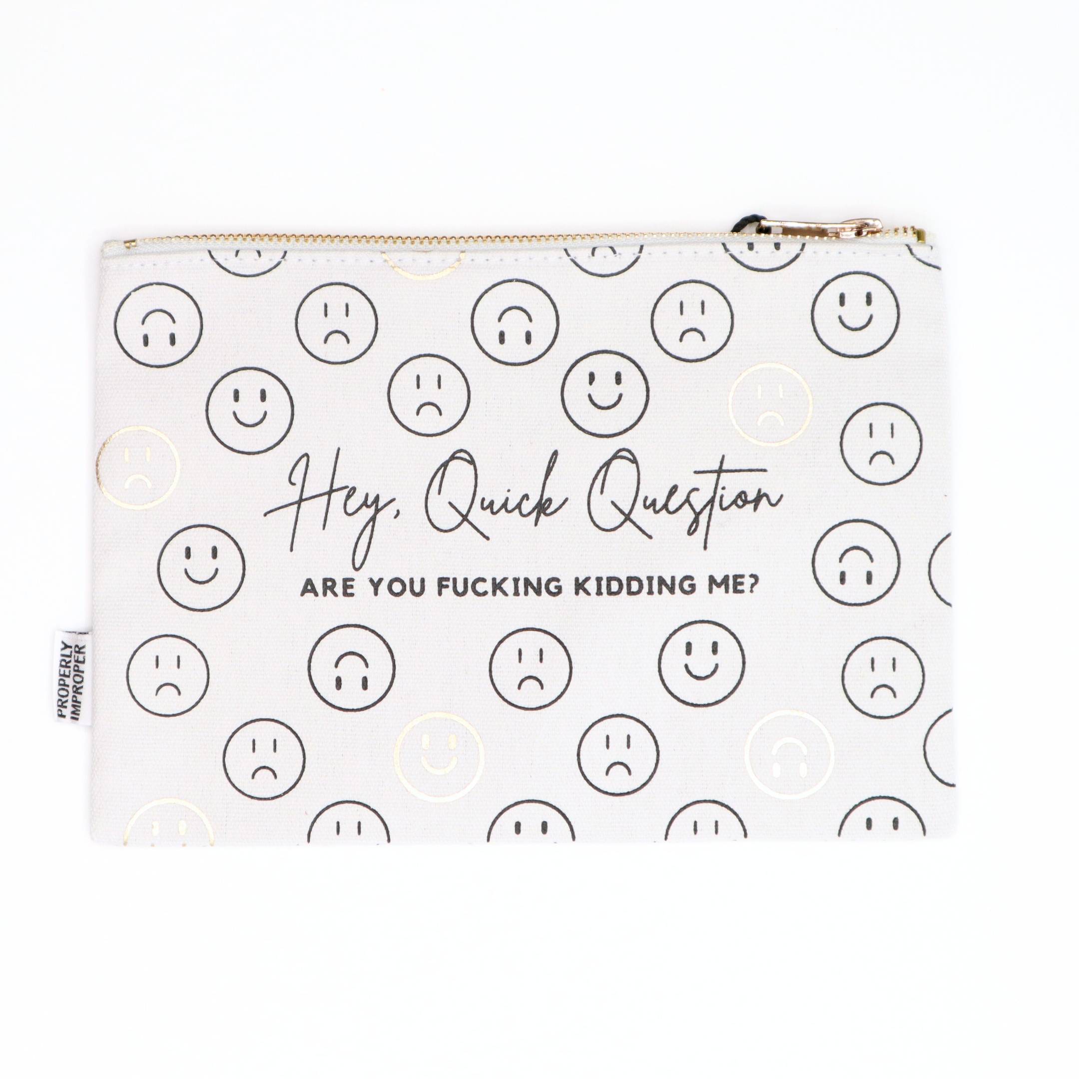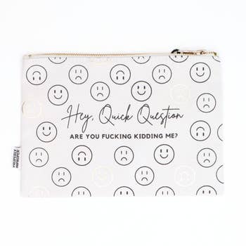 The Side Quests Procrastinator Zippered Canvas Pouch is perfect for keeping your essentials (and distractions) close at hand. With the witty phrase “I’m not procrastinating, I’m doing side quests” printed on the front, this 9x6” pouch adds personality to your daily routine. The sturdy canvas construction, leather pull, and gusset offer both style and function—whether you’re organizing pens, chargers, cosmetics, or crafting supplies. Ideal for students, gamers, creatives, or anyone who thrives on a little productive procrastination. Makes a great gift for your favorite multitasker or side quest enthusiast. Features: Heavy canvas material, faux leather zipper pull Size: Top 9" bottom 5.5" height 6" gusset 2.75" Design: I'm not procrastinating; I'm doing side quests