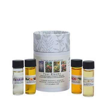 This compact acrylic display holds 3 each of our unique 10ml Organic Roll-on Perfumes, plus a tester for each one. ~Azhara, Divan, Envie, Joli, Roza, Shanti~ Full Display Includes: 3pc each 10ml Organic Perfume, plus tester Perfume Display Our natural perfumes are certified Organic by MOSA