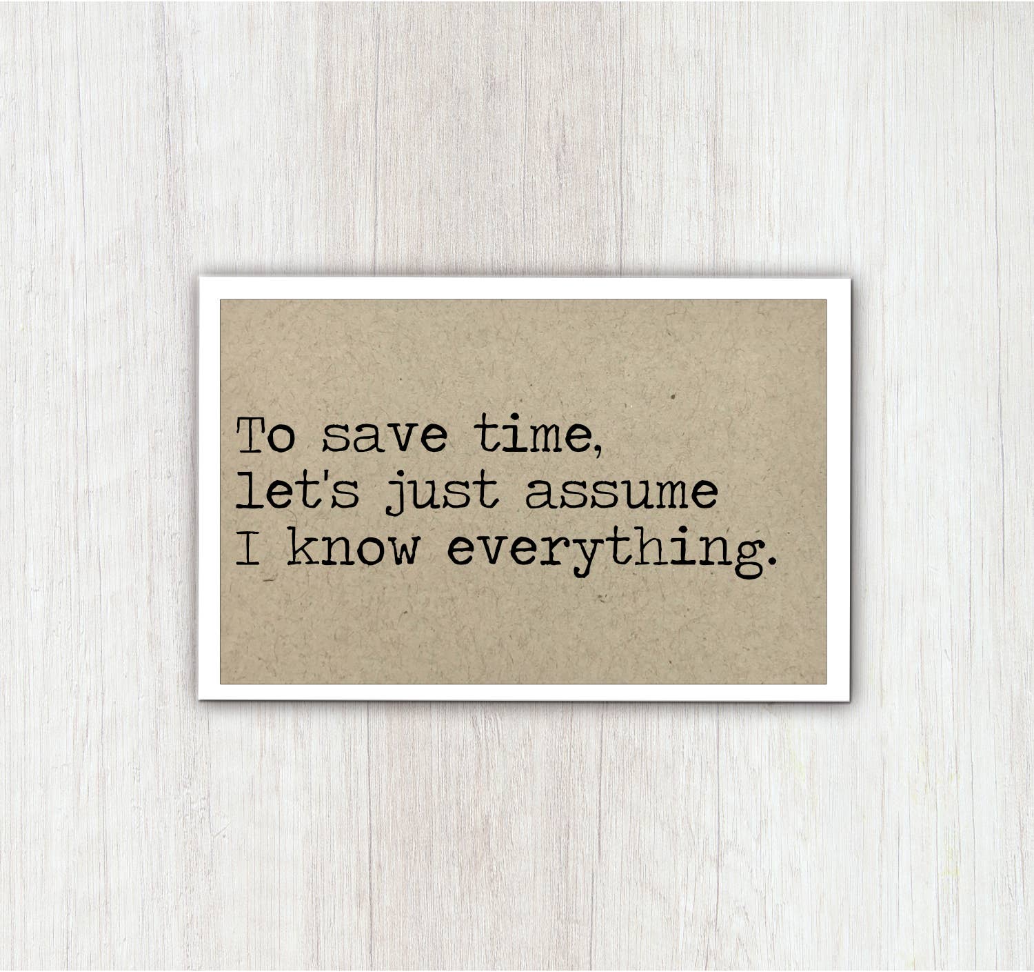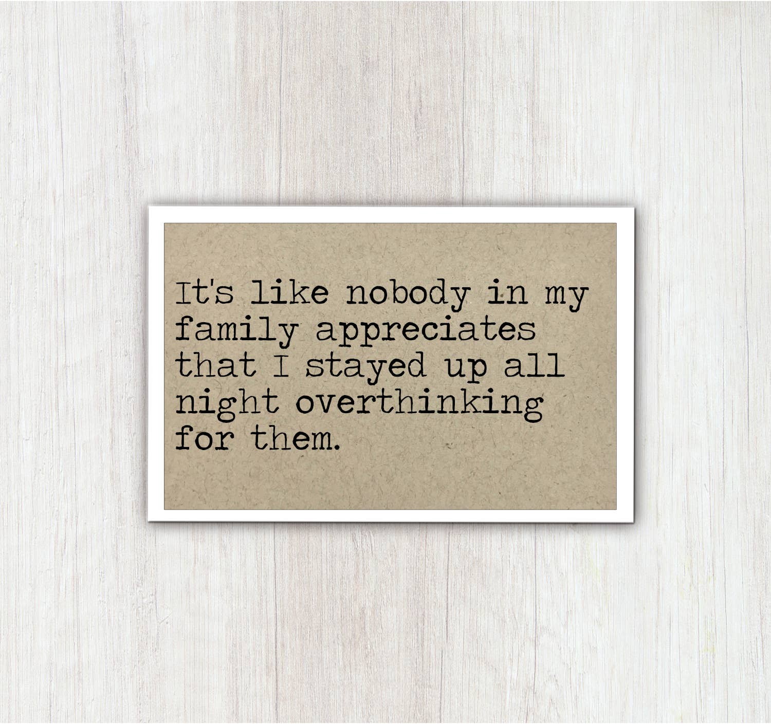 SKU: K110 Made in United States Audience: Everyone and Parents Color: Beige and White Is Set: Individual Occasion Theme: Everyday, Friendship, and Good Luck & Encouragement Season: Year-Round Theme: Family & Friendship Tone: Funny Weight: 19.84 g (0.7 oz) Dimensions: 7.6 x 5.1 x 0.3 cm (3 x 2 x 0.1 in)