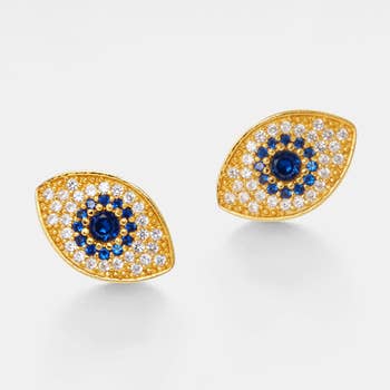 This protective evil eye stud earrings will not only protect your spirit, but also your style! In and dainty design, these cubic zirconia stud earrings shine bright to add a hint of shimmer to your first or second piercing. More Details: Carefully Handmade. Hypoallergenic Earrings. Sterling Silver (925). Cubic Zirconia Diamonds. Size: H: 9 mm W: 5 mm. Metal Colors: Silver, 18k Gold