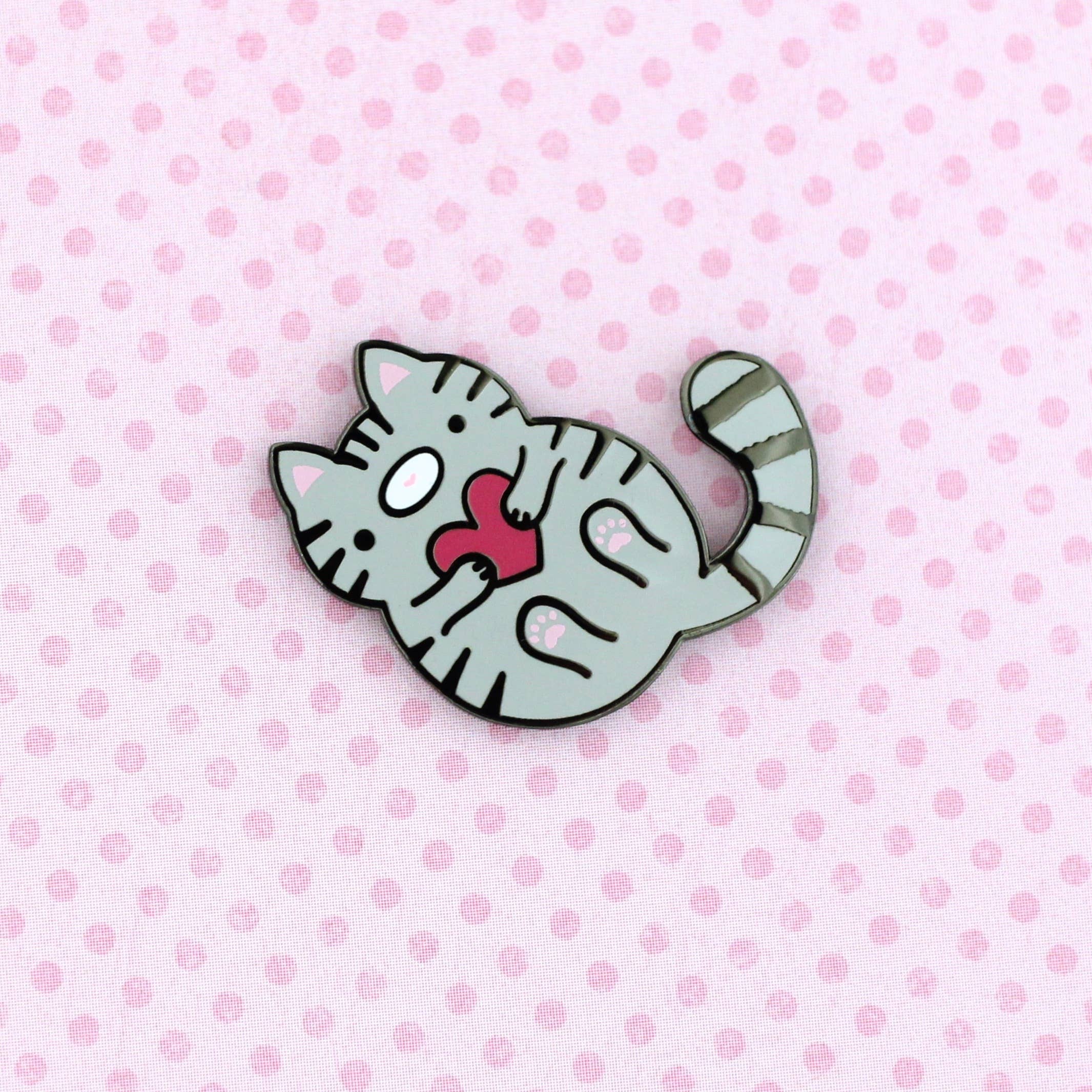 A cute kitty, floating your way in a hot air balloon to bring you some love this season! Whether you gift this pin to a loved one or use it to show yourself some love, this furry friend is ready to brighten your day. An enamel pin to add flair to your collar, jacket, or bag. Perfect for collecting, displaying, or gifting to a friend! The pin is made with hard enamel and polished gold-colored metal plating. It has one post on the back of each pin and comes with rubber clutch backing. • 1.25" Hard enamel pin • 2 Posts with rubber clutches • Designed by @occasionalish